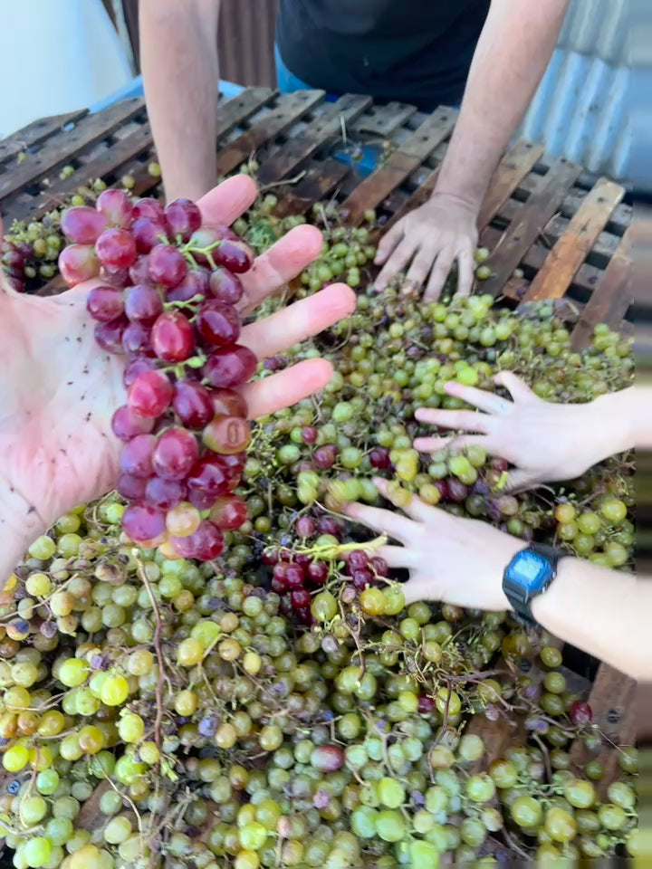 NR4 is made from old vines of Moscatel, a white grape that has been cultivated in the Itata valley in Chile for centuries. The single vineyard where we picked the Moscatel, also had a couple of stray País vines - that is why there is a pink hue in the wine. We left the skins in the tank during the fermentation, so NR4 is an orange wine.